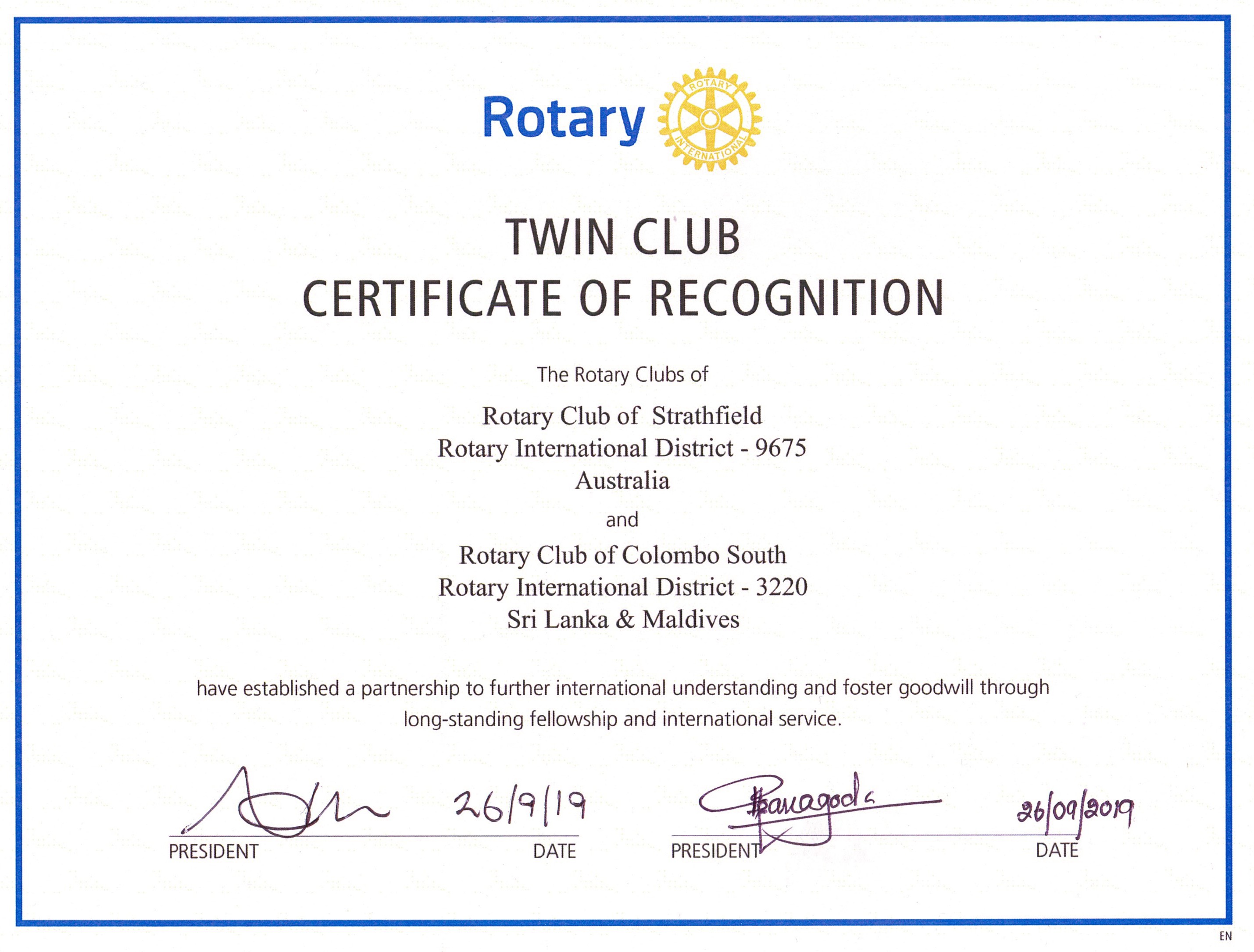 Left to right: PP Rod McDougall, President Sepalika