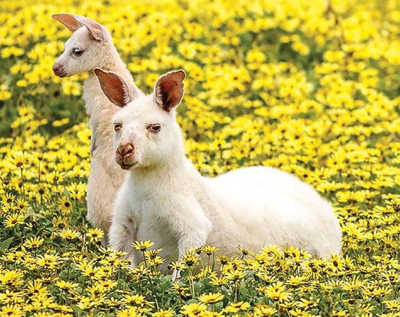 Bordertown Wildlife Park's famous mob of white kangaroos.